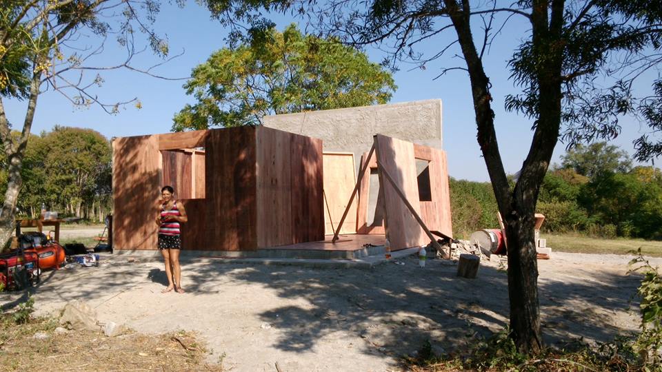Avec cette construction, nous désirons démontrer que les gens eux-mêmes peuvent construire leurs propres maisons avec l'aide des voisins, de la famille, de la "Fundación MinuanoPuede"* et ses cours de menuiserie et cela s'appelle «auto-construction» !